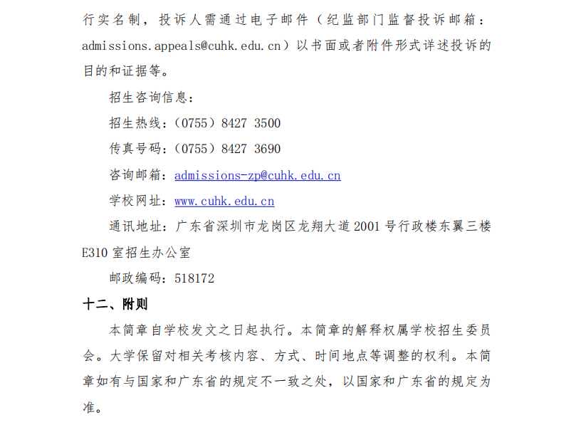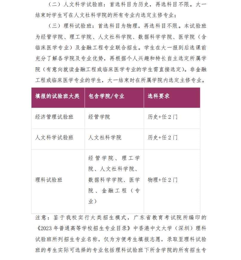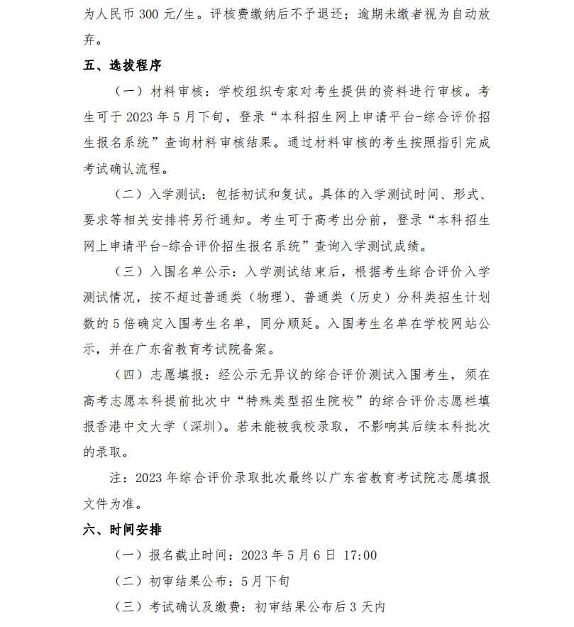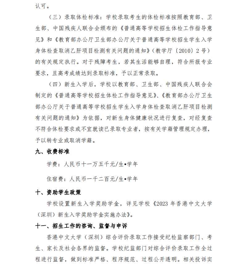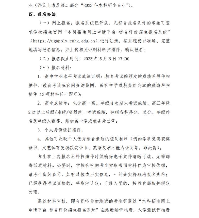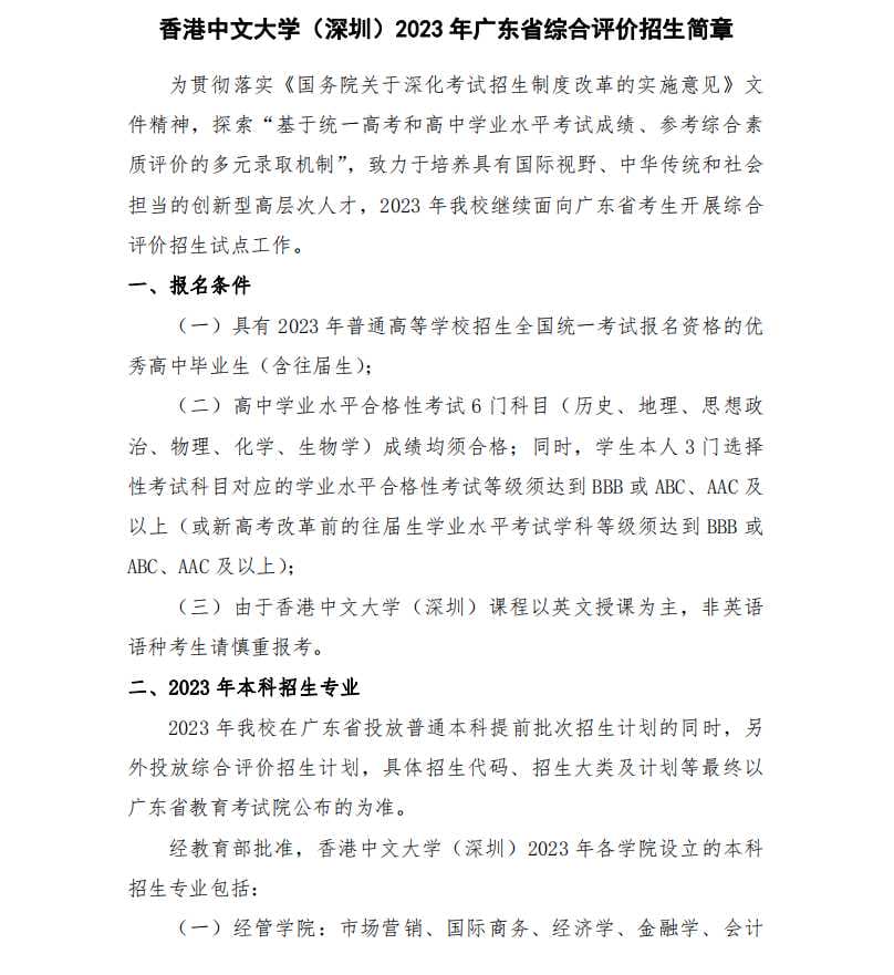 香港中文大学(深圳)2023 年广东省综合评价招生简章